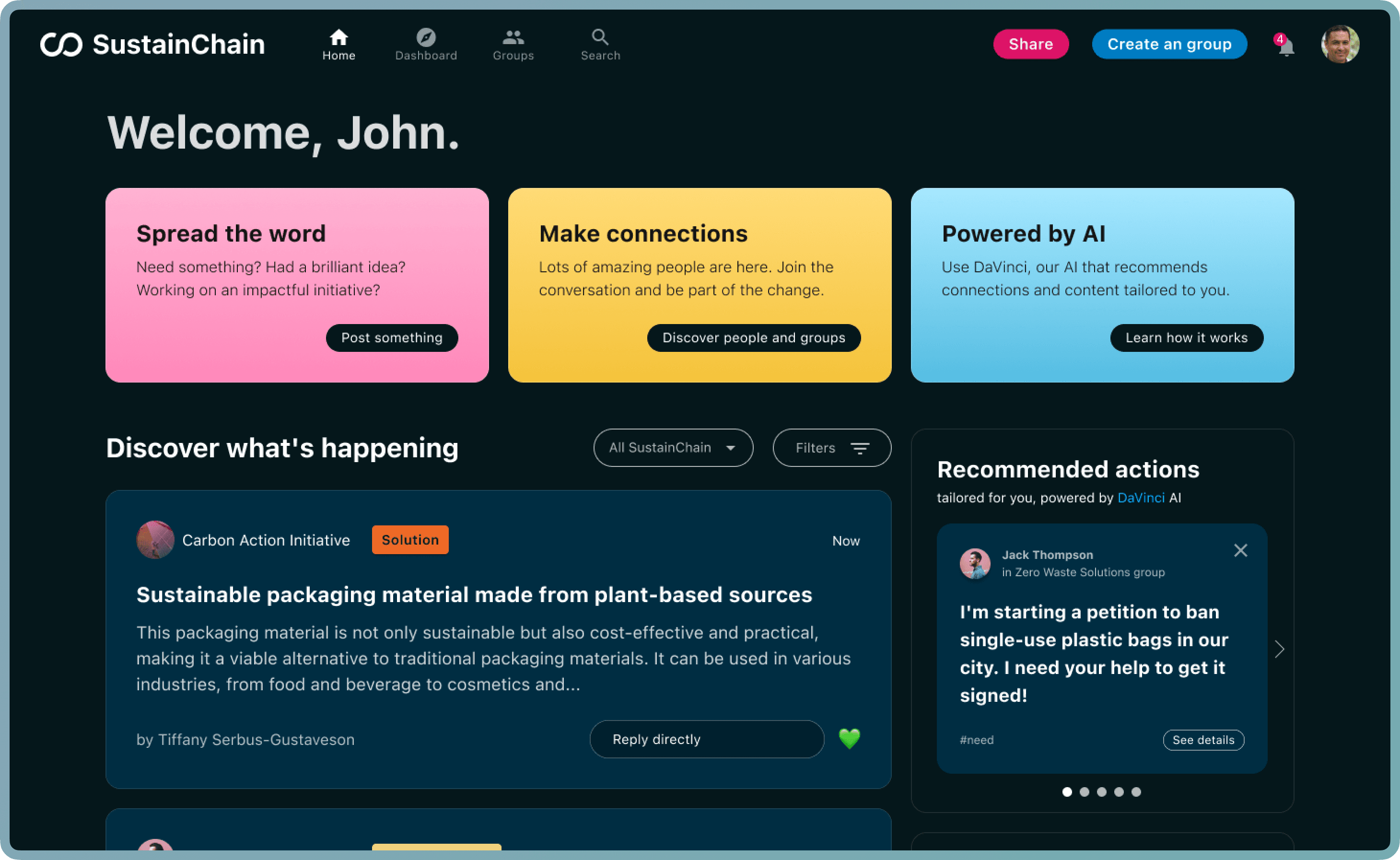 I'm also a part-time lead designer at SustainChain - an award-winning AI platform trying to push forward the UN's Sustainable Development Goals. Pretty neat cause, right?